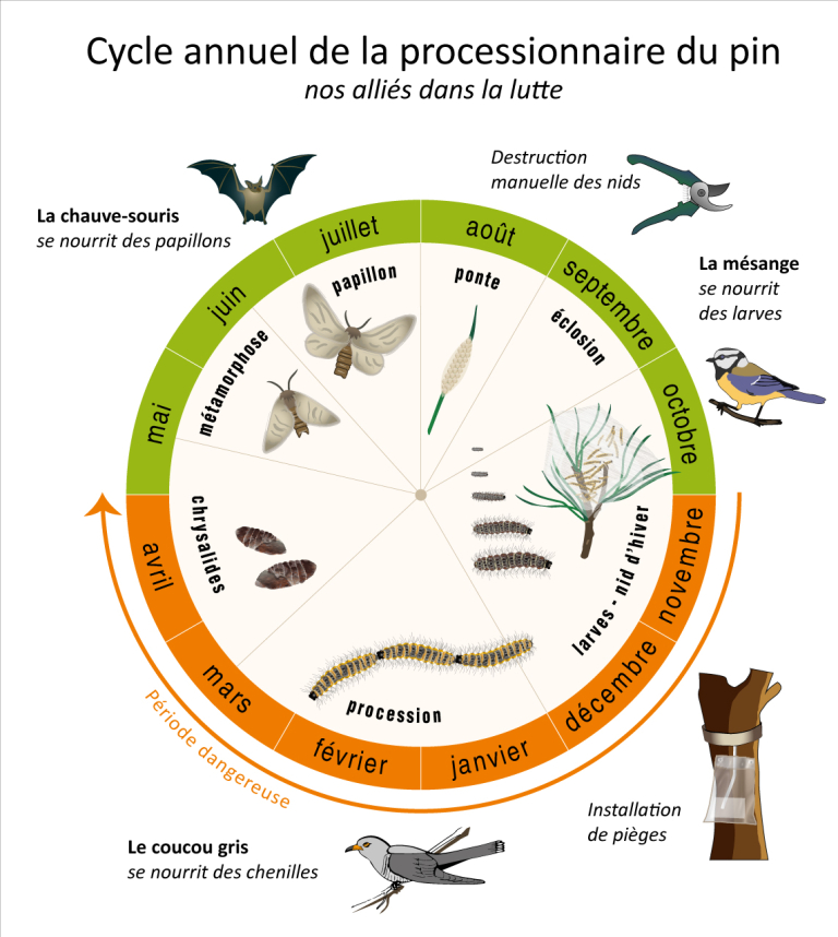 👉 Des nids ont toutefois été repérés sur des arbres en terrains privés. Les propriétaires concernés sont invités à agir rapidement (pièges ou intervention d’un professionnel) avant la descente des chenilles en procession.
