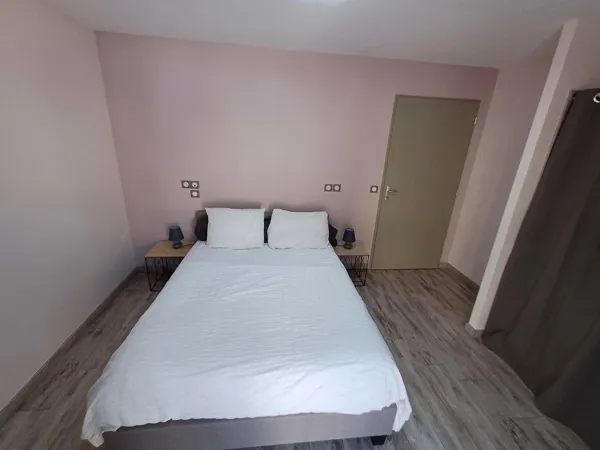 1 chambre au rez de chaussée avec télévision et salle de bain attenante avec douche à l’italienne et WC.