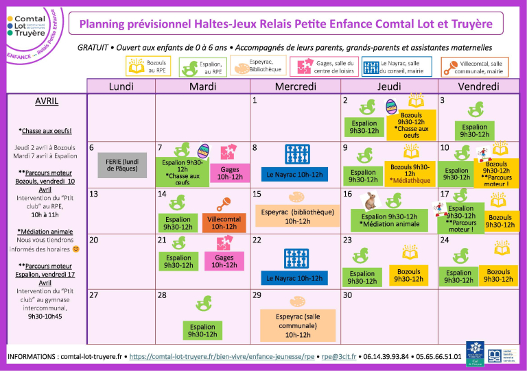 Planning du relais petite enfance avril 2026